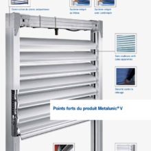 On rencontre fréquemment le brise-soleil orientable Metalunic dans la pratique. Il se laisse incliné à la fois manuellement et automatiquement dans chaque réglage de hauteur. La sécurité contre le relevage complique la vie des cambrioleurs.