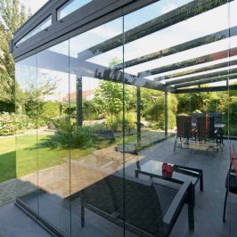 La paroi coulissante en verre de Griesser glisse facilement et peut aussi être verrouillée si nécessaire. La paroi coulissante convient en protection contre le vent et le mauvais temps pour les terrasses et les pavillons. Elle permet un ré-équipement sur de nombreux types de toit, offre la transparence maximale du système sans cadre vertical: pour des pièces très lumineuses et une transition continue de la maison dans le jardin.