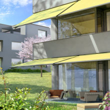 Le store AZUR avec tube porteur carré est spécialement conçu pour être utilisé dans des immeubles ou habitations collectives. Les différents systèmes de support permettent un montage en façade, sous dalle ou sous chevrons. La chute réglable jusqu’à 60º répond à presque toutes les demandes d’ombrages.